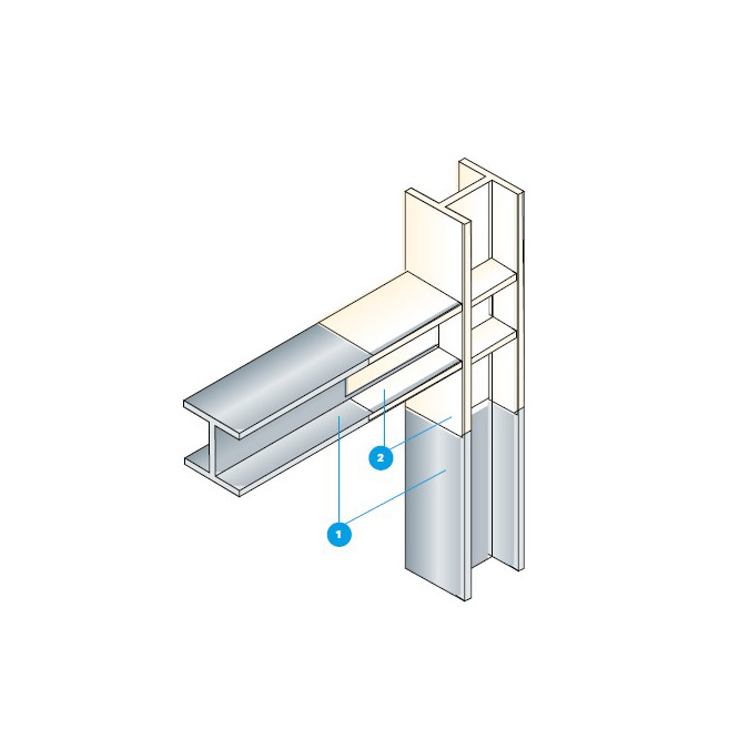 Proteção com espessuras muito baixas de elementos estruturais tipo H e I até R90 e proteção de perfis de seção oca circular e retangular até R30. (Proteção de estruturas e pisos de betão.)